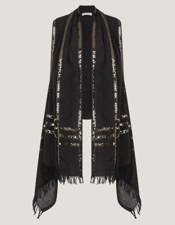 Ibiza’s calling. With this slouched over your bikini,every hour will be golden. Whisked from a lightweight cotton and linen blend,this cover up is stitched with gold sequins for a pool party-ready finish.