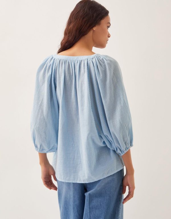 The Monsoon blouse: Summer edition. Featuring a pastel hue with a stripe finish,this cotton blouse is an easy,breezy option for anything from office to high street. Finished with blouson sleeves and a button-through fastening. Pink