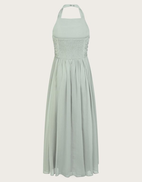 Red carpet-ready. Made for the dancefloor,this dress features a snug ruched bodice with a forever-favourite halter neckline that fastens on the back of the neck with a button. Finished with a made-for-twirling maxi skirt. Green