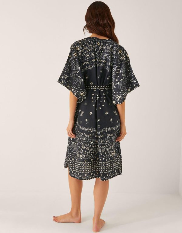 Flights booked,kaftan packed,time to go. Floaty and lightweight,this kaftan is a must for long,relaxing days spent poolside. Made from breathable cotton,it’s patterned with symmetrical decorative motifs for a timeless boho feel. Black