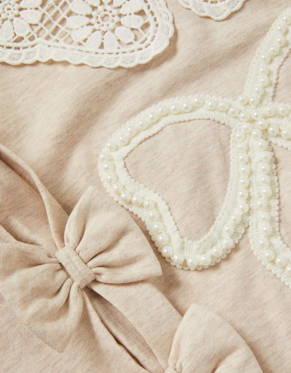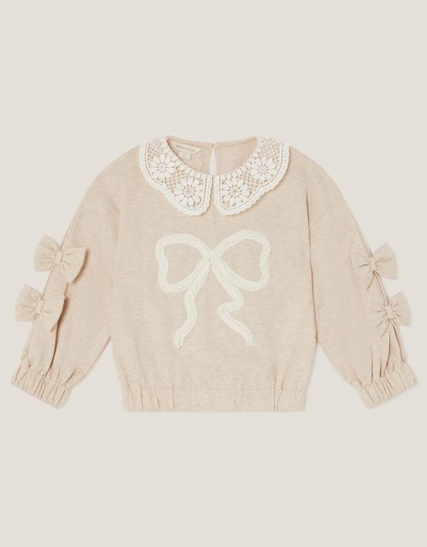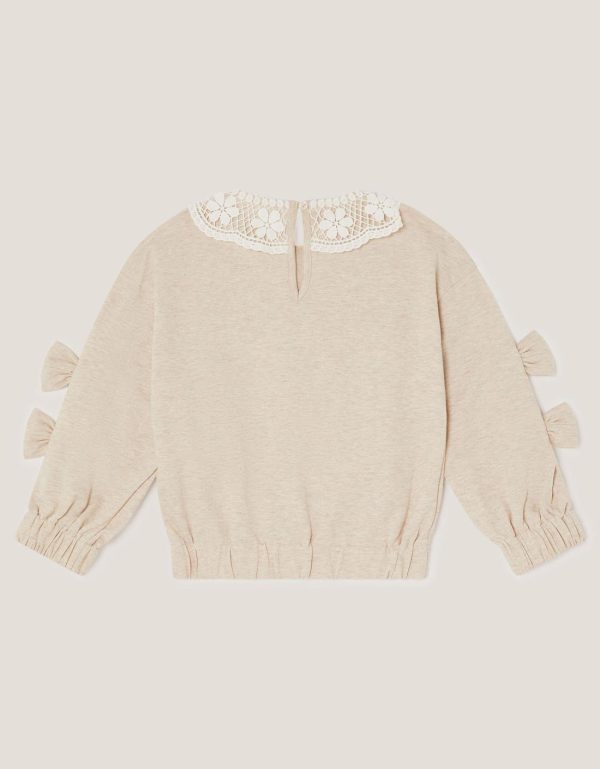 Bow Embellished Collar Sweatshirt Ivory | Children Monsoon Sweaters & Cardigans