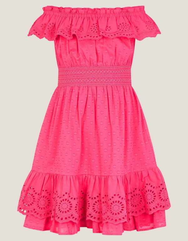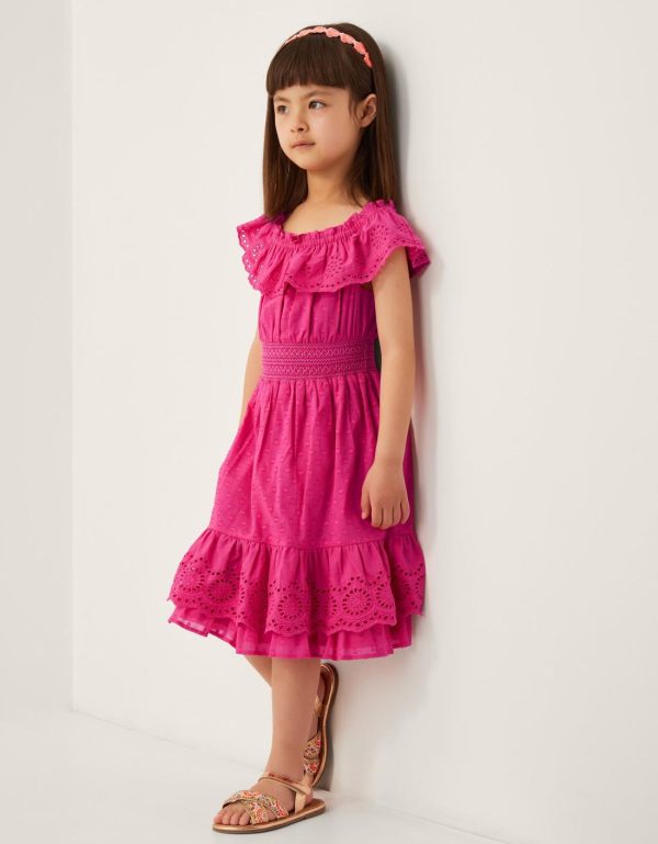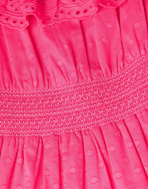 Sweet as sherbet! Doused in a gentle lemon hue,take a spin and watch the frill neckline and tiered hem twirl in the summer sun. Finished with intricate broderie and polka dots. Pink