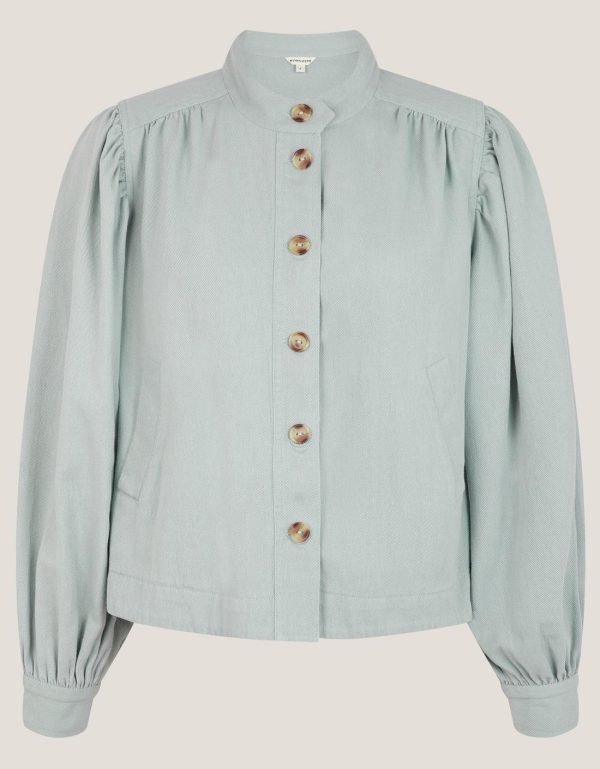 Too much? Never. Cut from cotton in a cloudy blue hue,this jacket is designed with main character sleeves,offering a voluminous finish (and bit of drama) to your looks. Features front button fastenings and practical side pockets. Blue