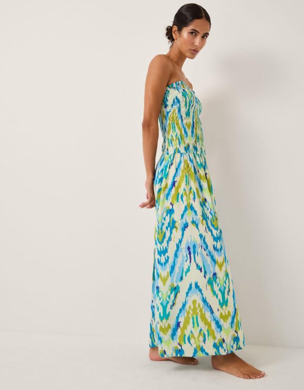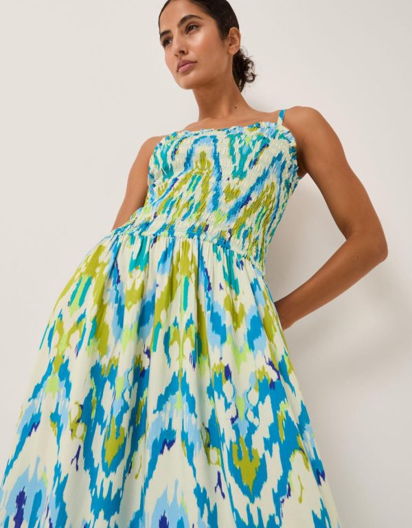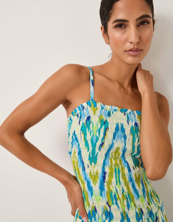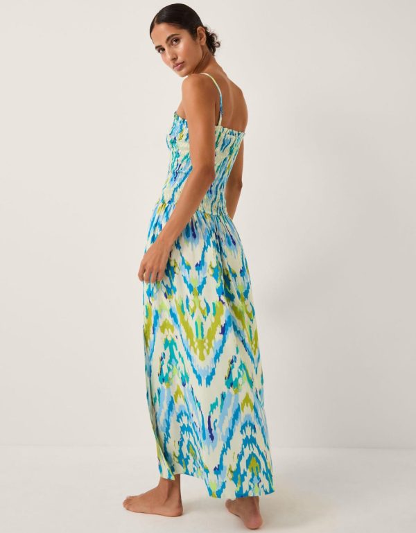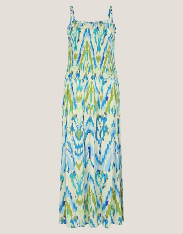 Show your true colors. Summertime calls for bold prints and bolder style. Designed with a smocked bodice,dropped waist and ankle-grazing hem,this dress features detachable straps for versatile styling. Let the dress do the talking and pair with sleek,simple sandals. Blue