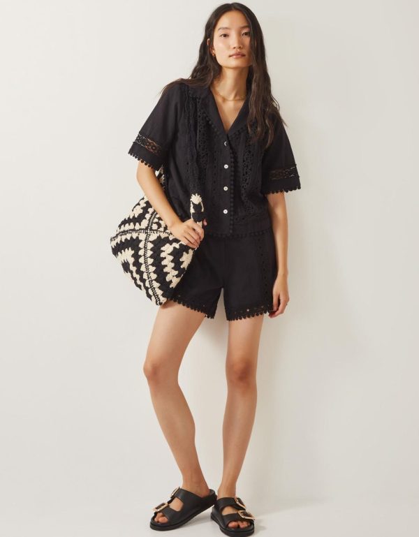 Your suitcases new bestie. A versatile summer staple,these cotton shorts are slung high on the waist with decorative lace panels to finish. Style with a plain tee or pair with the matching shirt for a cool,co-ordinated look. White