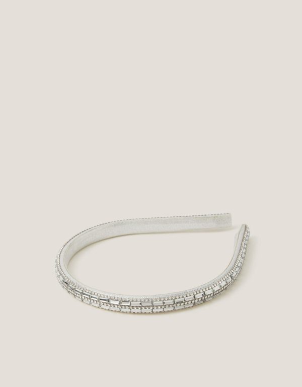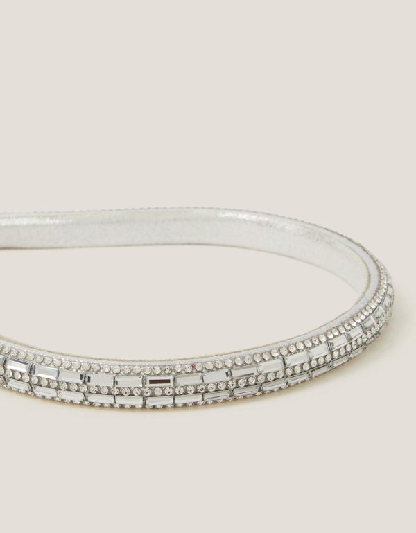 For off-duty princesses. Take a break from the tiaras and style them in this sparkly headband,embellished with rectangular jewels and dainty diamantes.