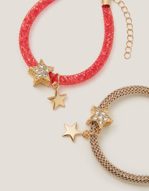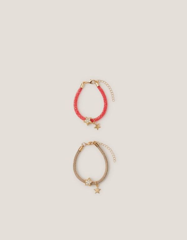Glisten up. One for them,one for their bestie,this dazzling pair make great friendship bracelets. Designed with sparkly star charms and shimmery finishes in gold and pink,they fasten with a lobster clasp and extender. Two included.