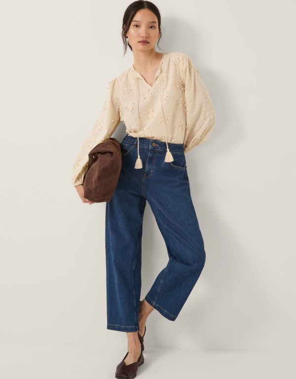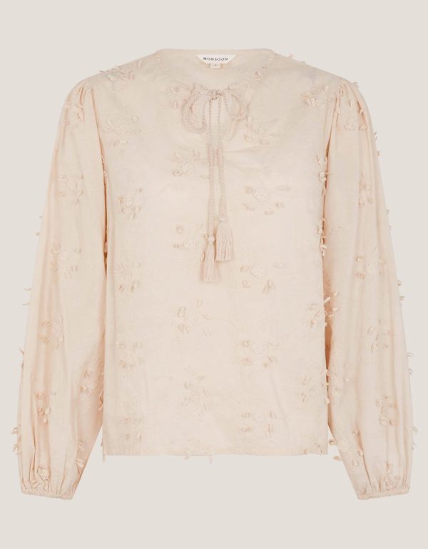 Neutrals? Yes,please. Soaked in a shade that simply works with everything,the applique florals offer playful textures and an elevated finish. Frame with blouson sleeves and tassel cords at the neckline. Ivory