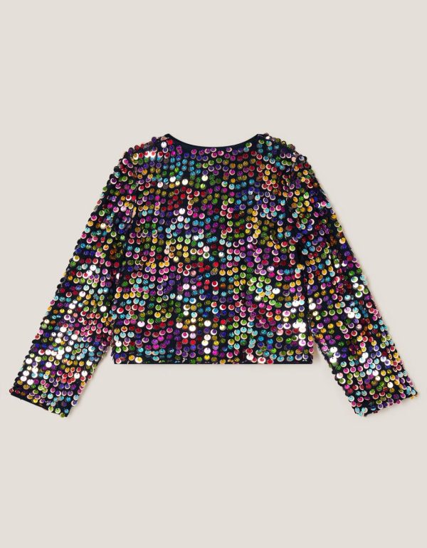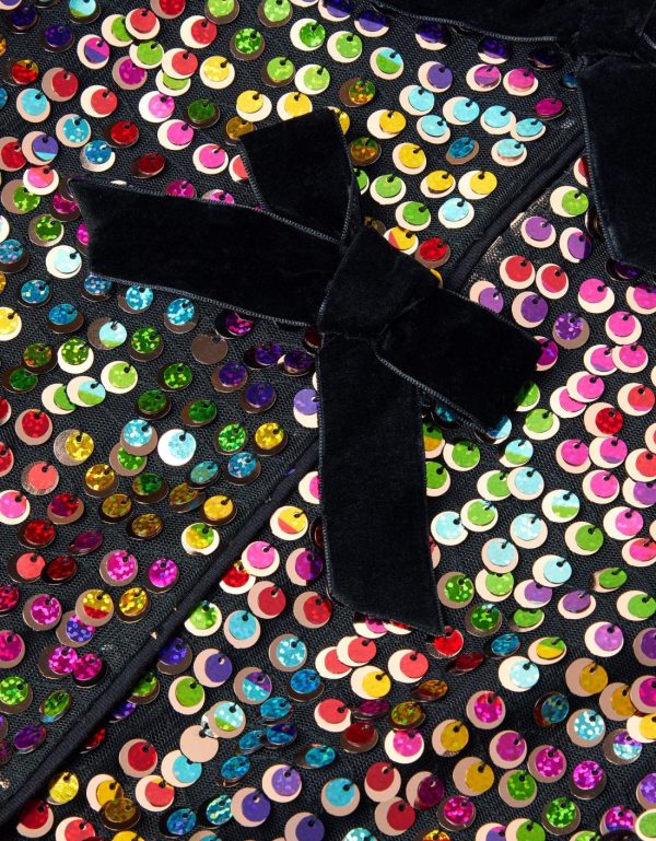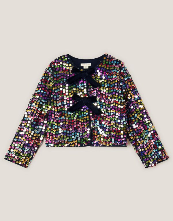 Glee,guaranteed! With this over their outfit,they’ll be the life of the party. Decorated with endless sequins in rainbow colors,this cardigan is finished with perfectly-tied bows through the front. Multi