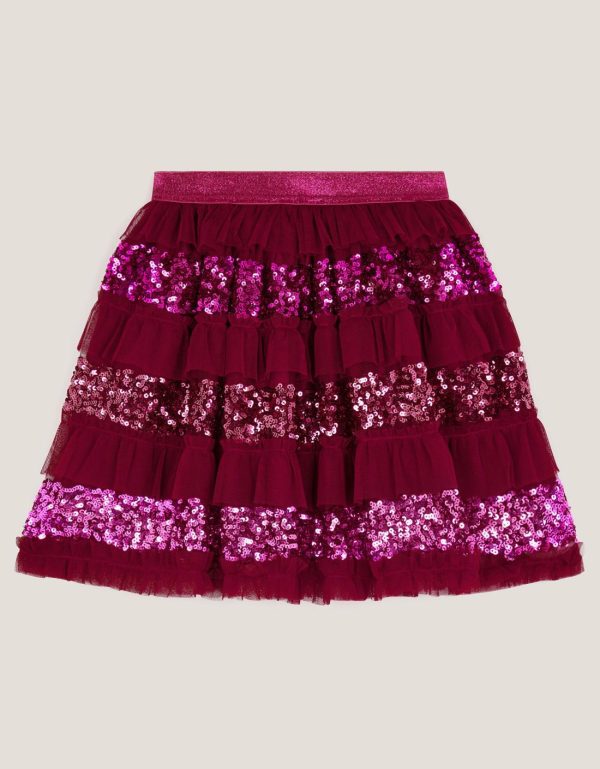 Sequin Ruffle Disco Skirt Red | Children Monsoon Skirts