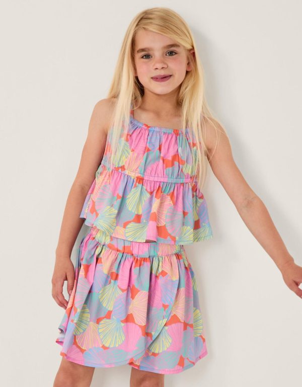 She sells sea shells… say that three times! Coated with shells in a rainbow of pastel tones,this set comprises a strappy smock top with a matching skirt. Perfect for long days treasure-hunting and rock pooling,it’s super-stretchy for ultimate comfort. Multi
