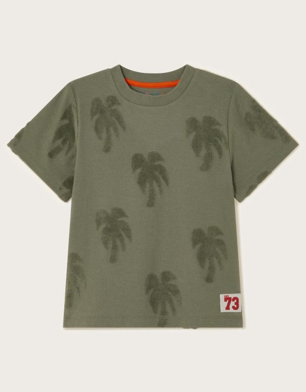 Dreaming of the summer holidays. Featuring tufted palm trees throughout,this t-shirt is spun in super-soft cotton. Green