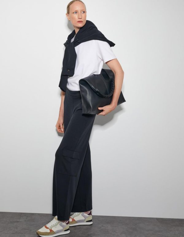 It’s a casual thing. A floaty wide leg profile and utility pockets to the front and sides makes these pants an off-duty delight. Gray